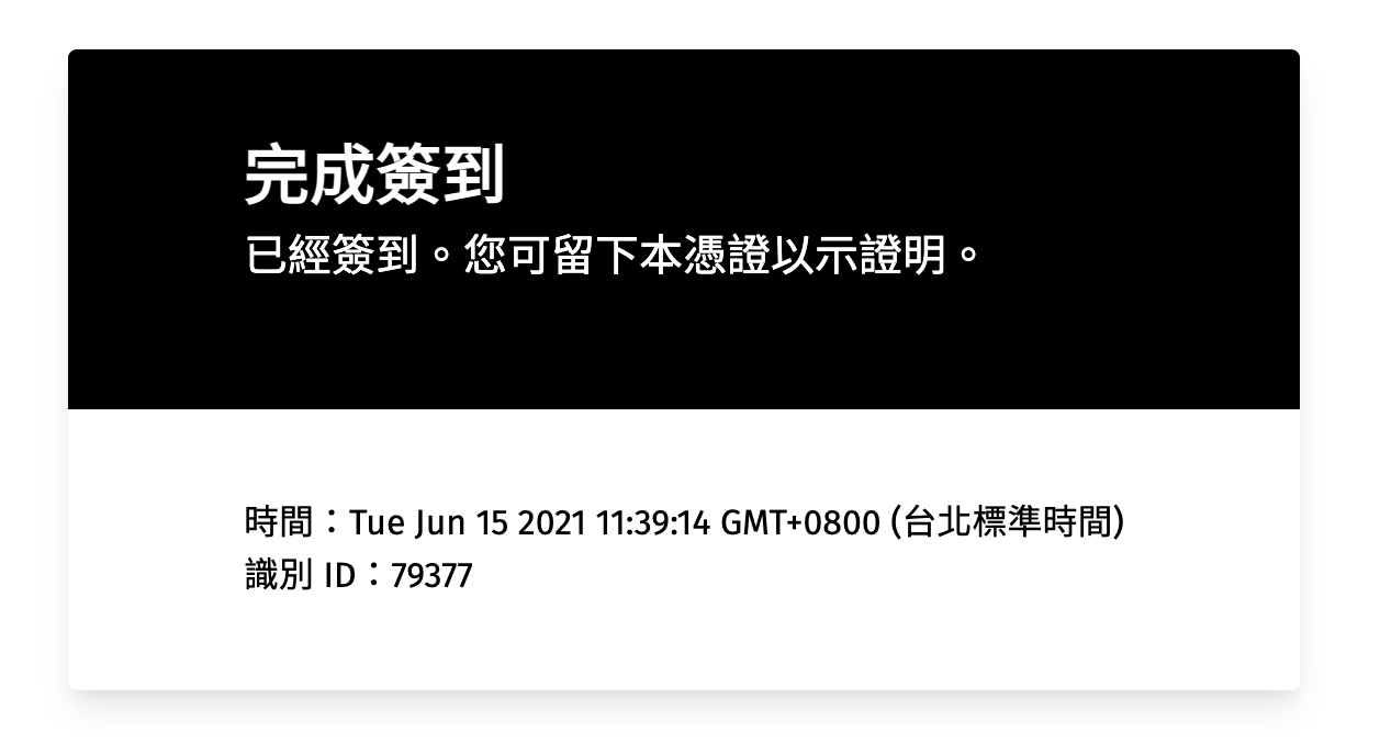 登入後,會出現當節的簽到資訊,畫面中出現當下的時間點,即代表簽到成功。